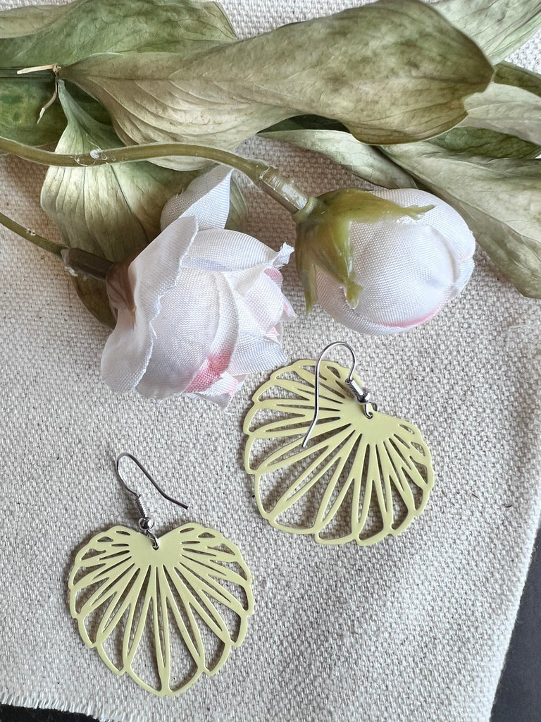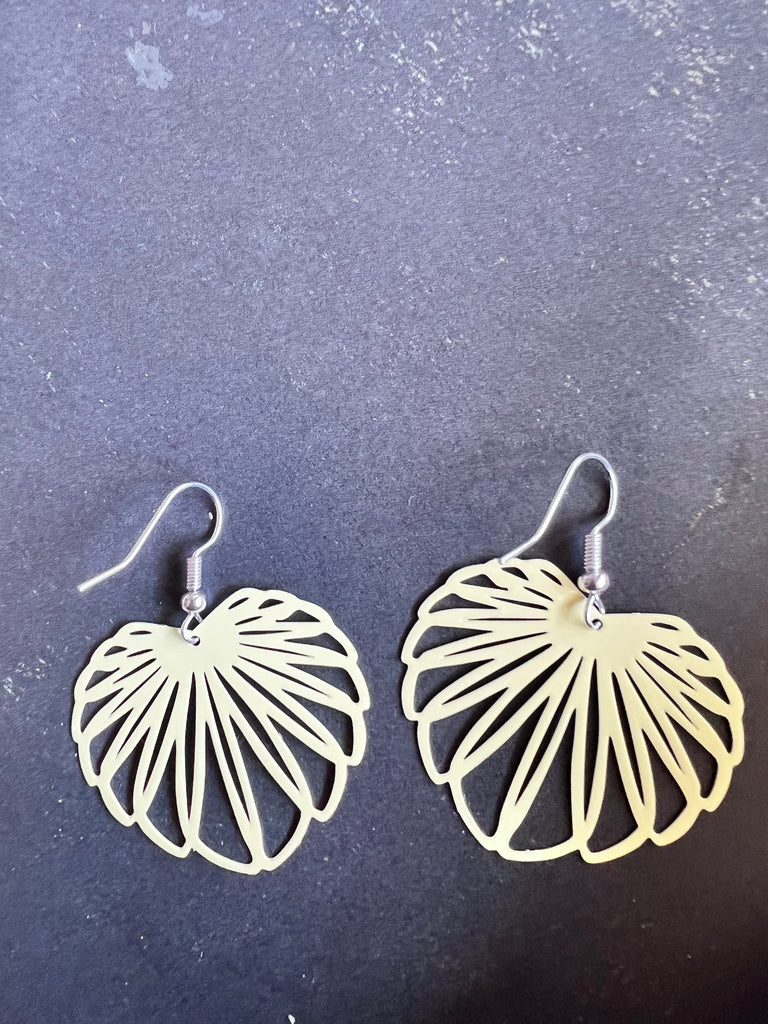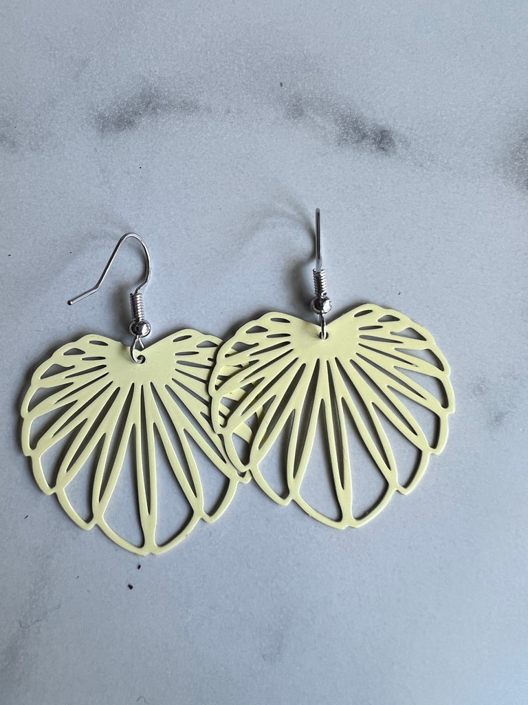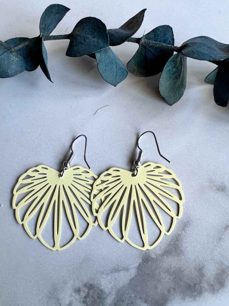 Bijoux boucles oreilles feuilles jaunes crèmes feuilles tropicales feuilles bananiers