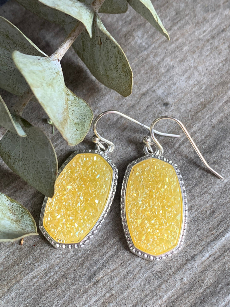 Bijoux style druzy jaune