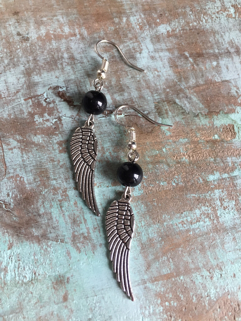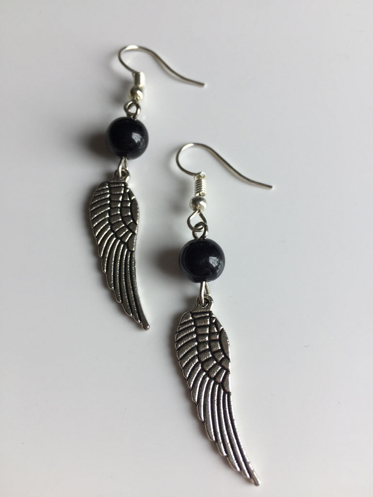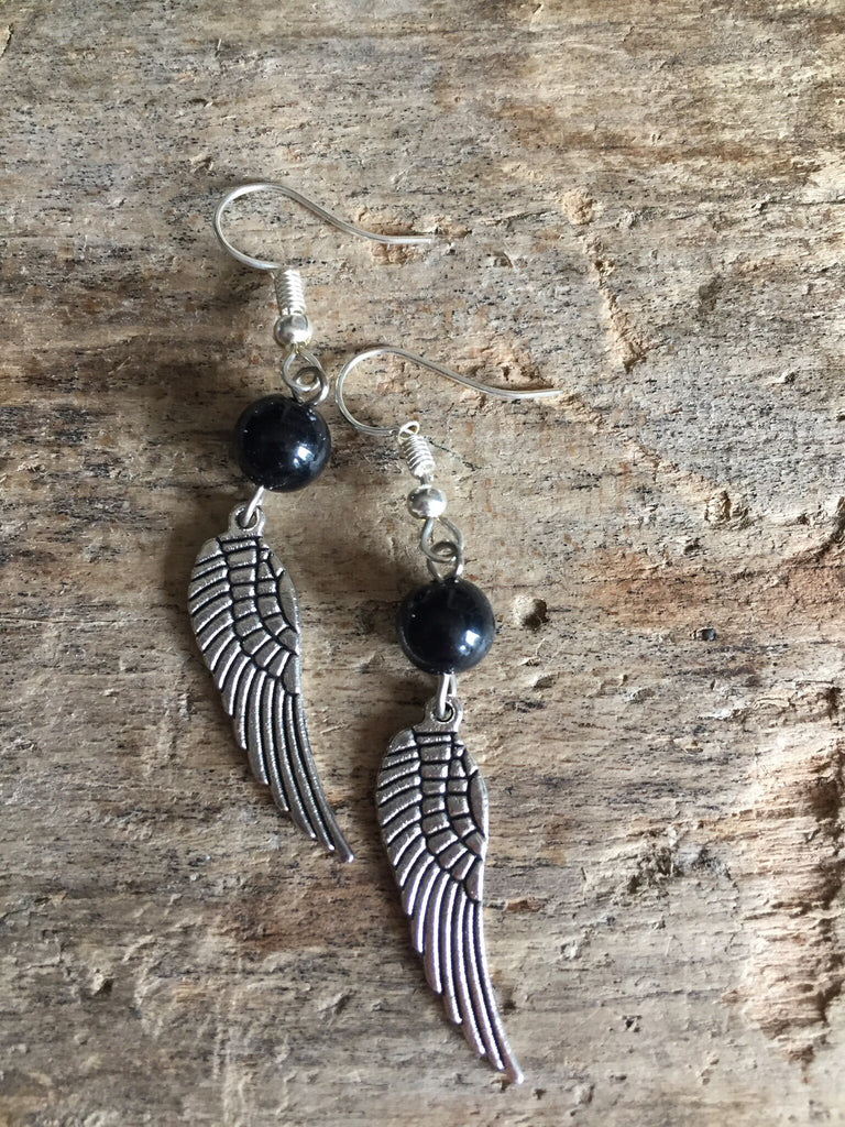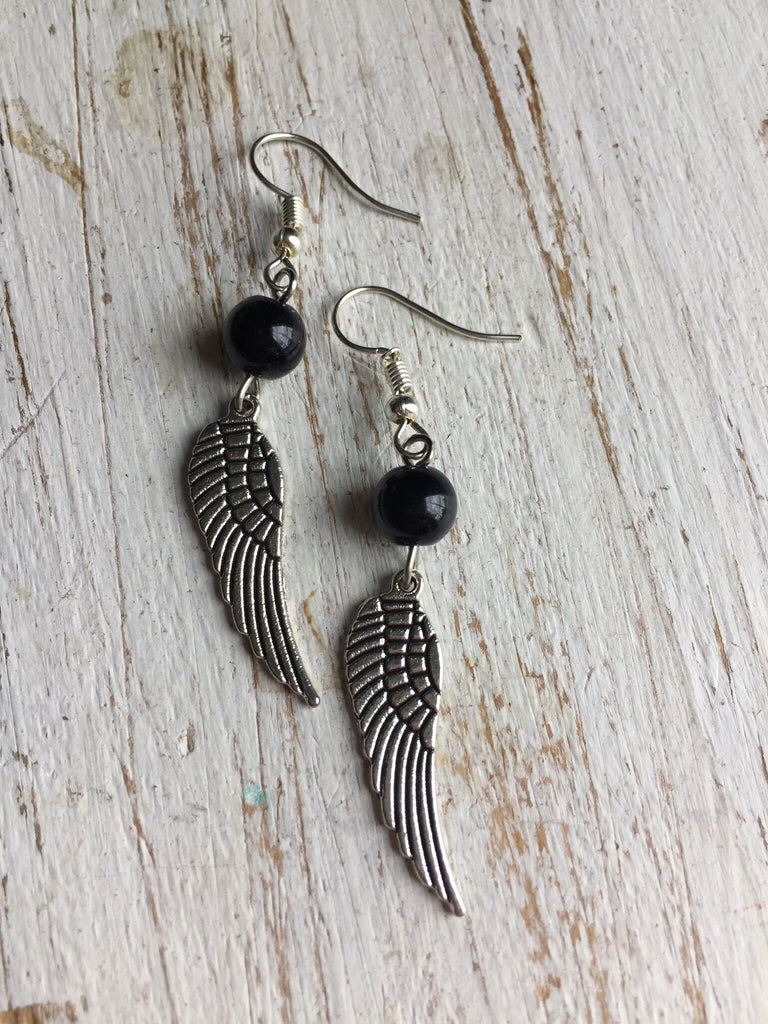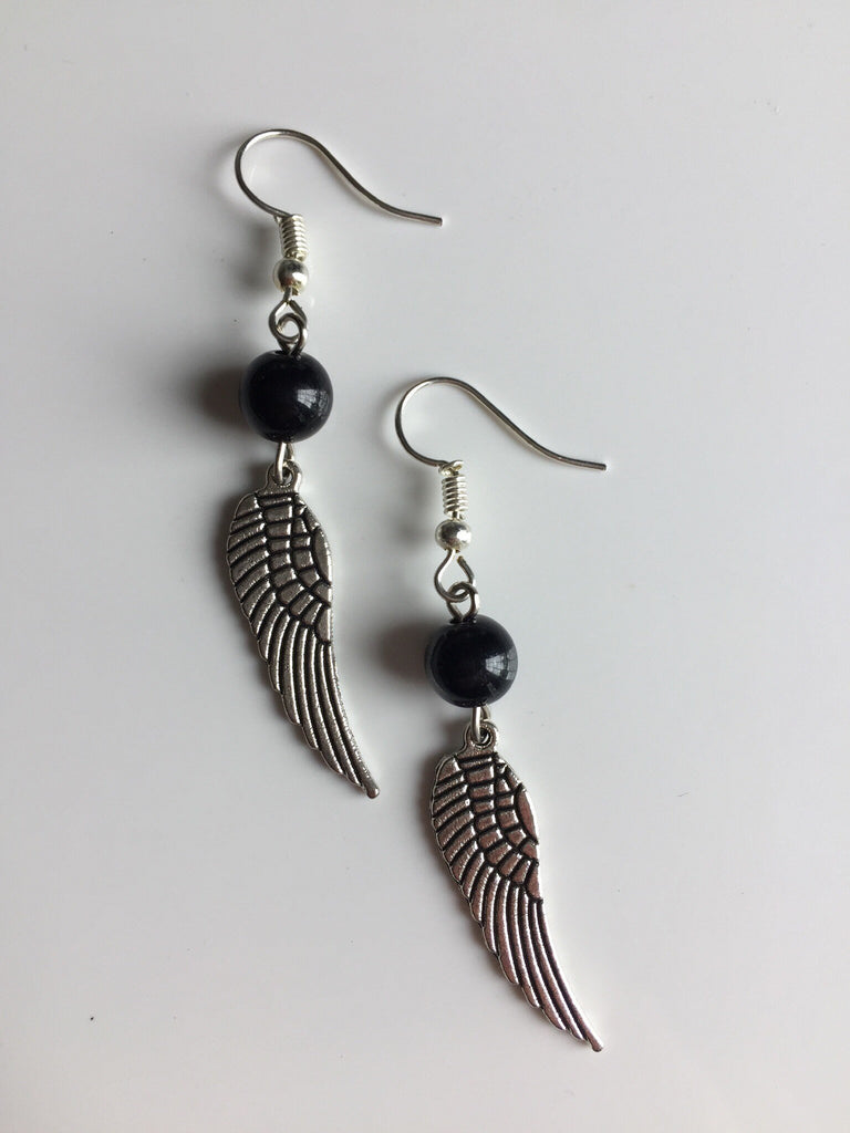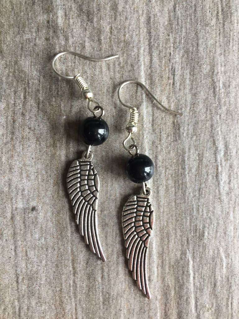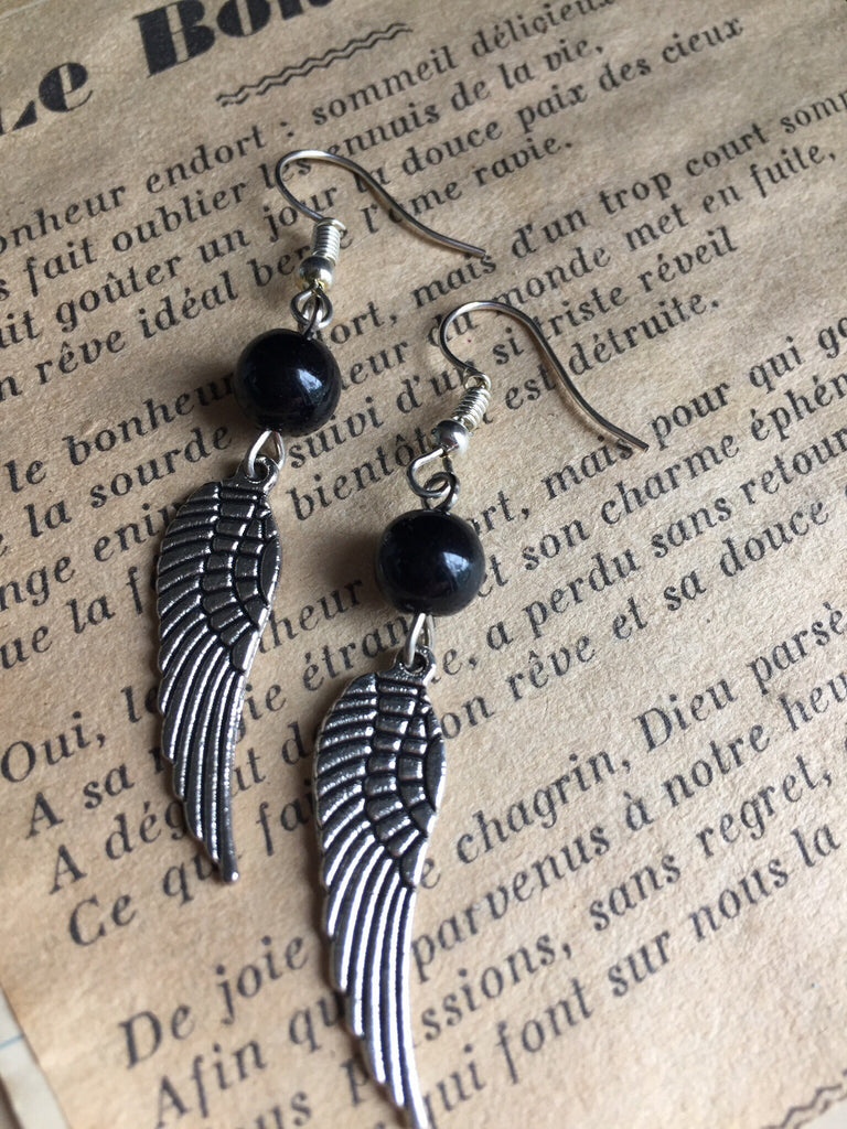 Boucles d’oreilles ailes d’ange perle noire Wing Angel