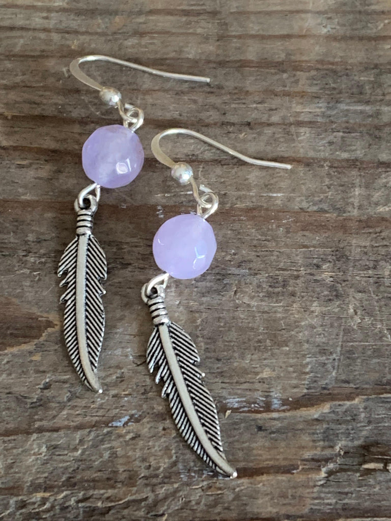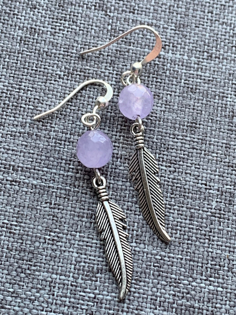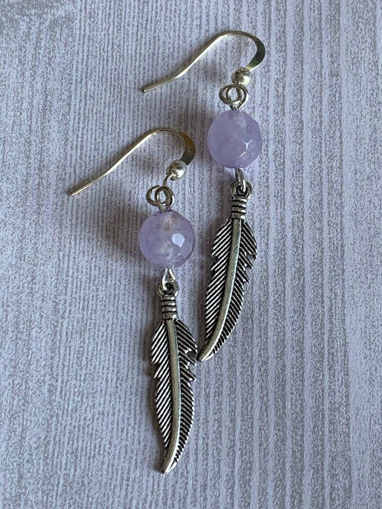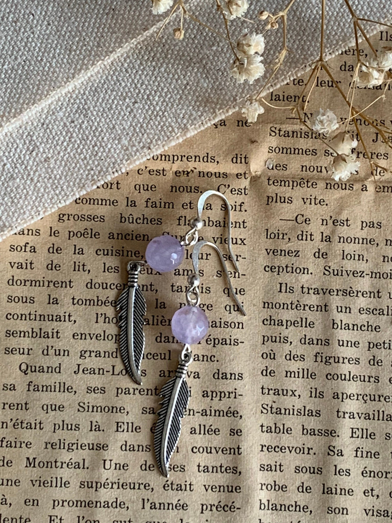 Boucles d’oreilles améthyste pierres avec feuille argent