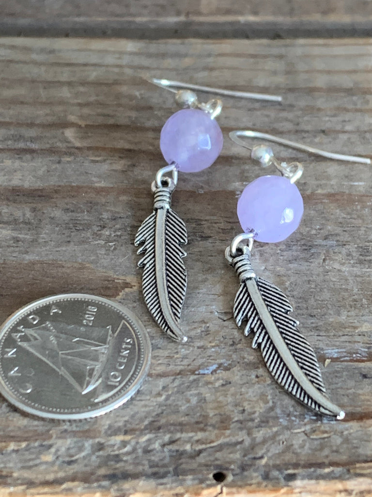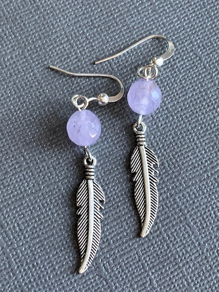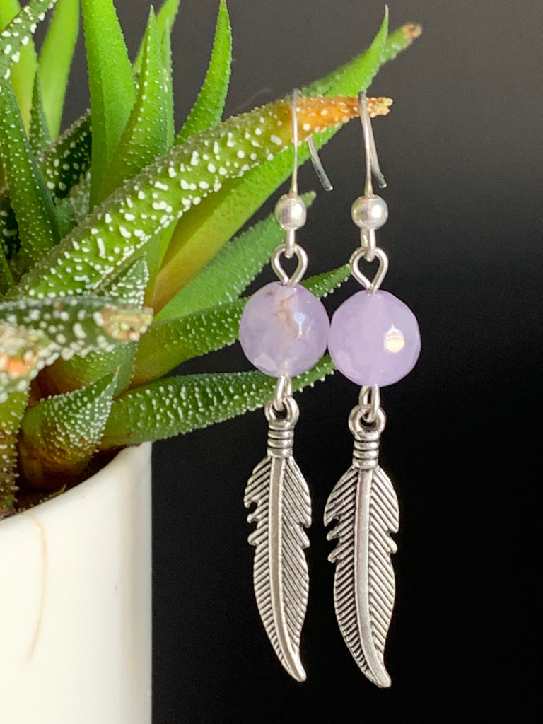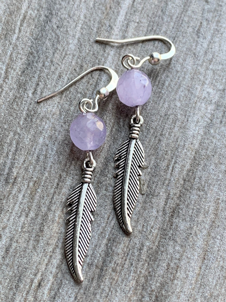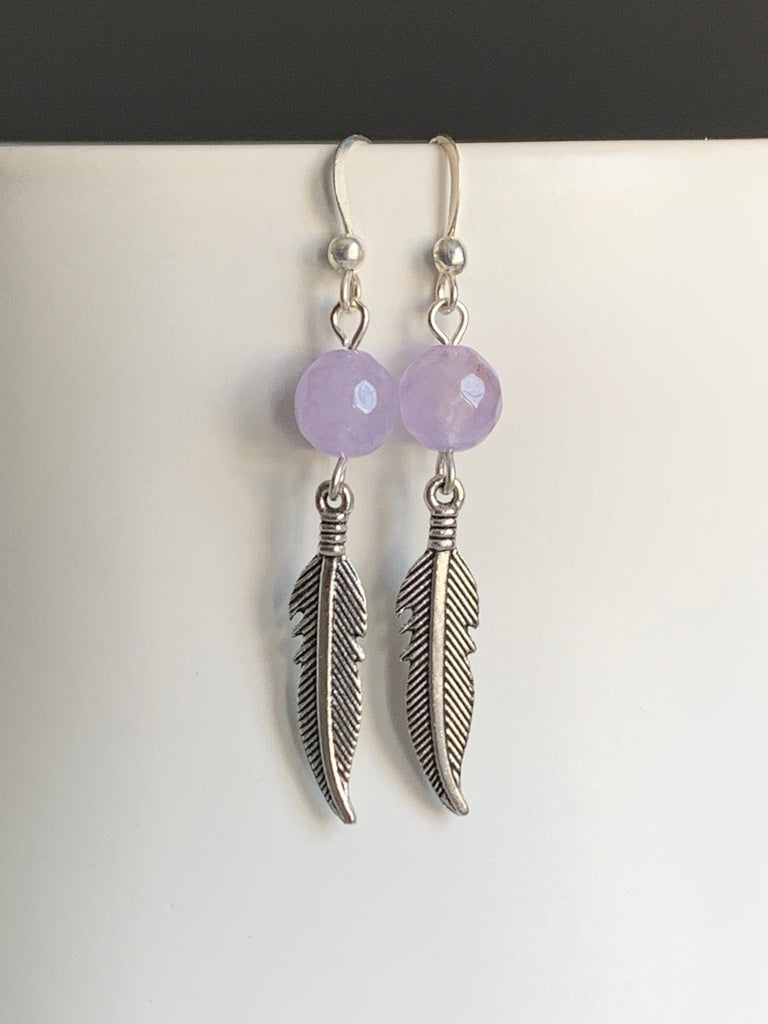 Boucles d’oreilles améthyste pierres avec feuille argent