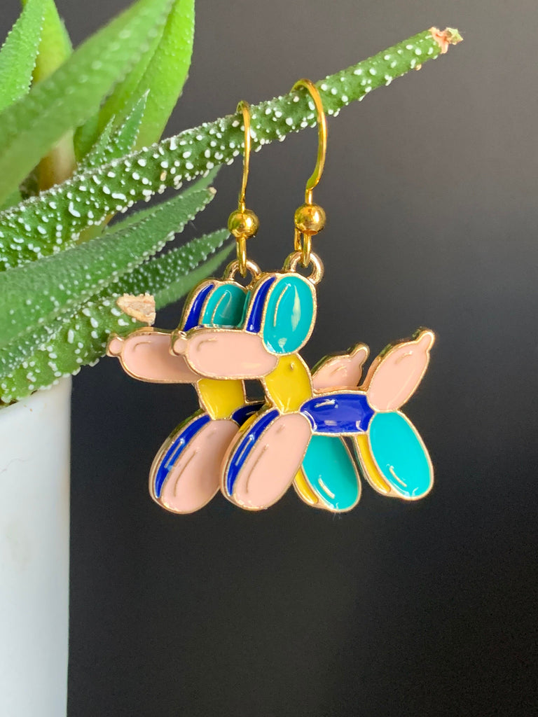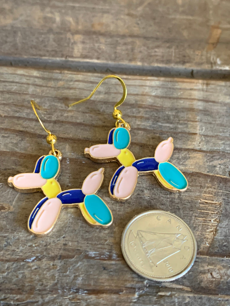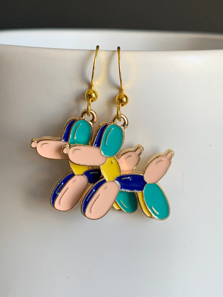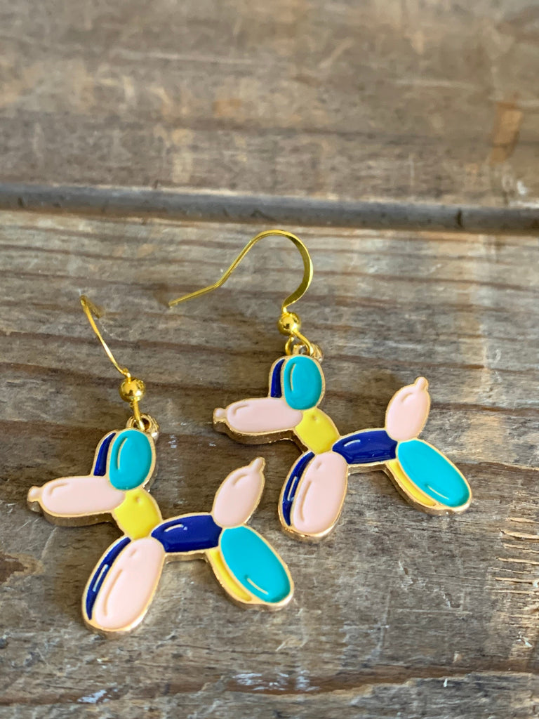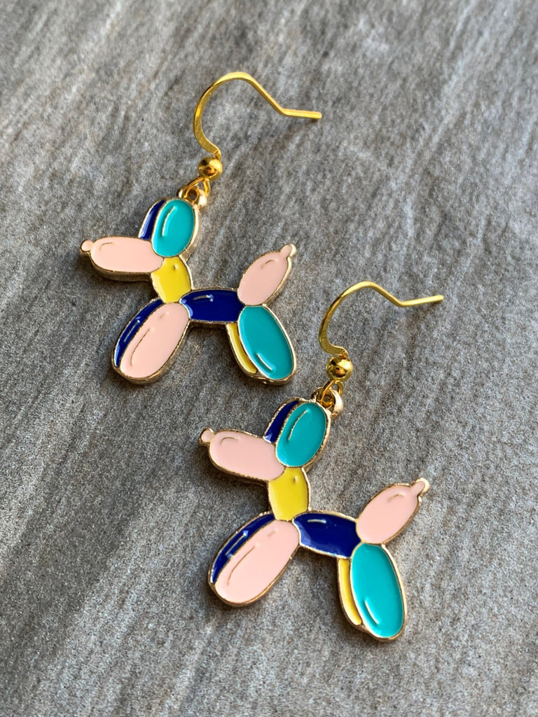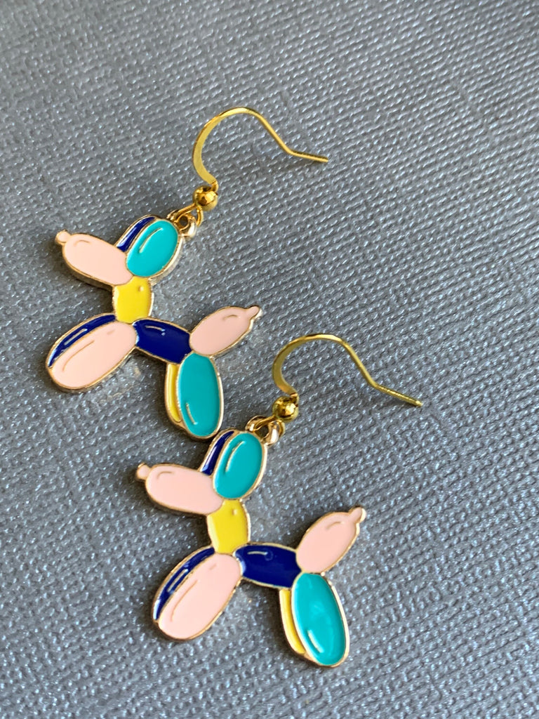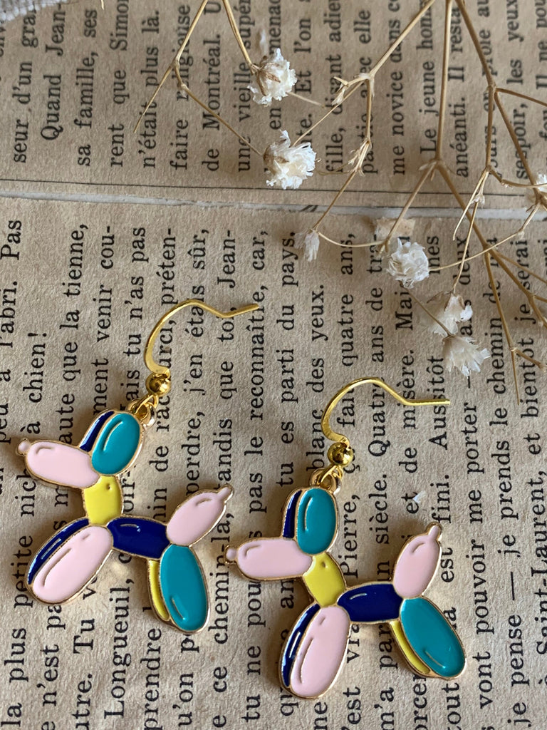 Boucles d’oreilles breloque chien en balloune multicolore en alliage de métaux or