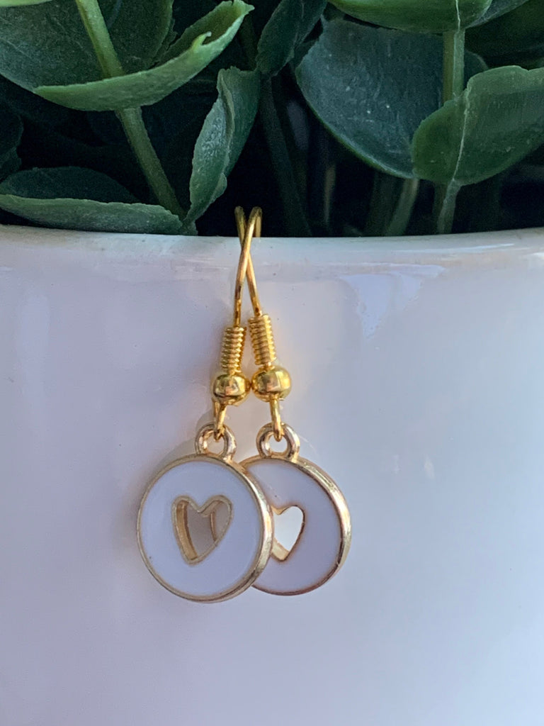 Boucles d’oreilles breloque coeur rouge sur crochet alliage de métaux or