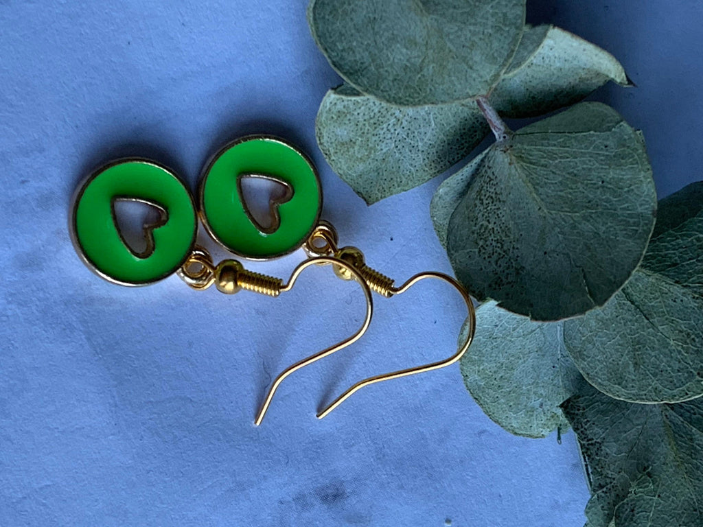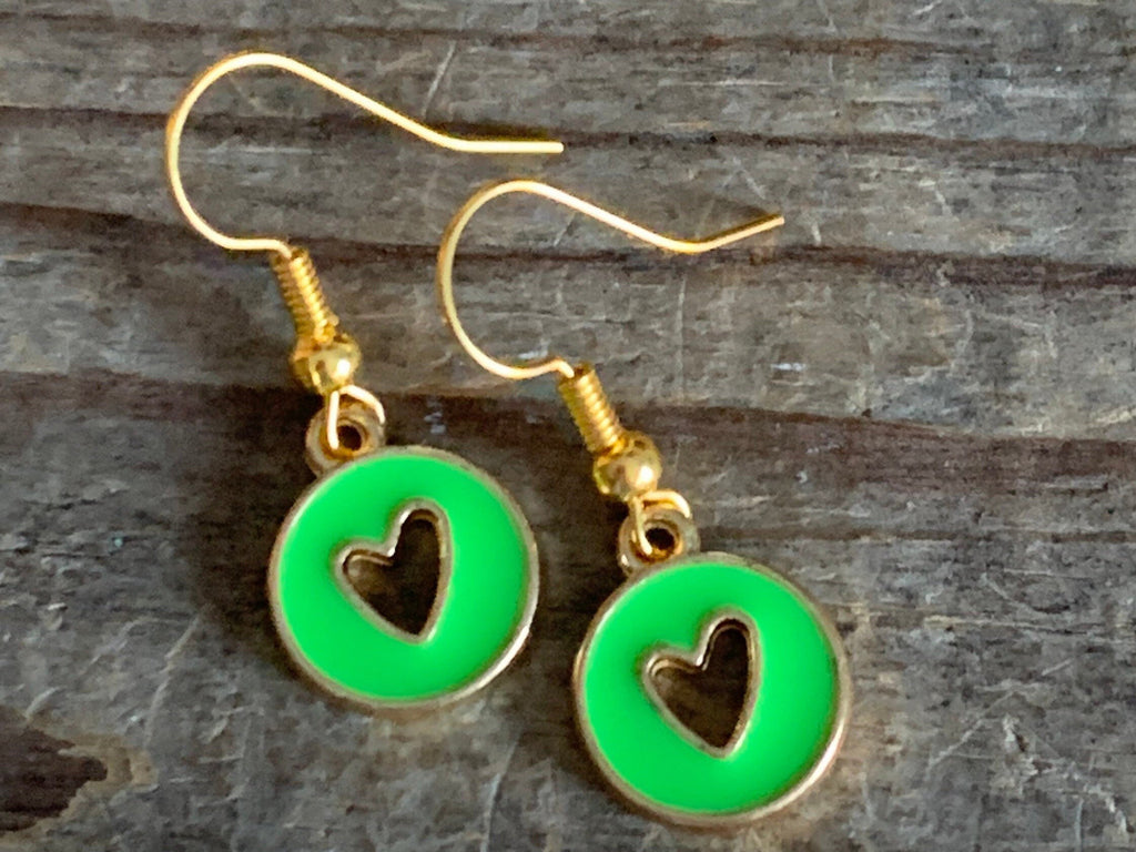 Boucles d’oreilles breloque coeur vert fluo sur crochet alliage de métaux or
