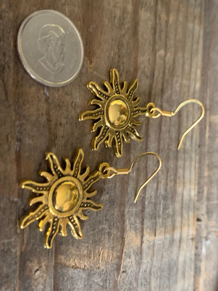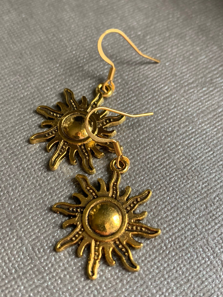 Boucles d’oreilles breloque soleil or alliage de métaux