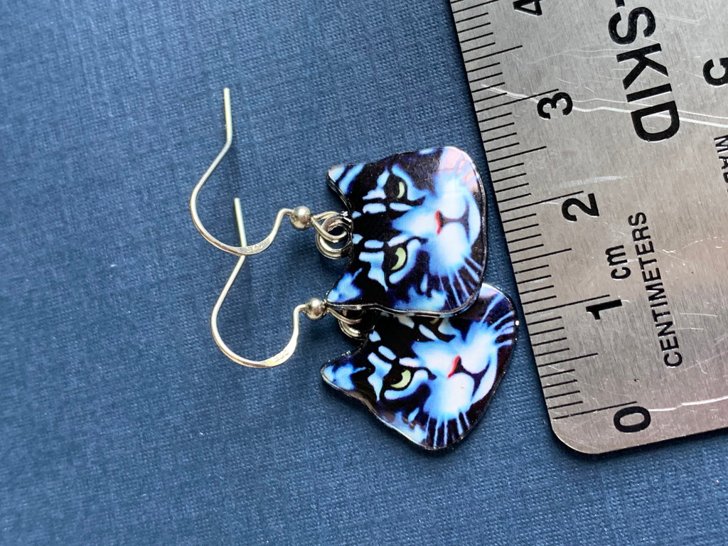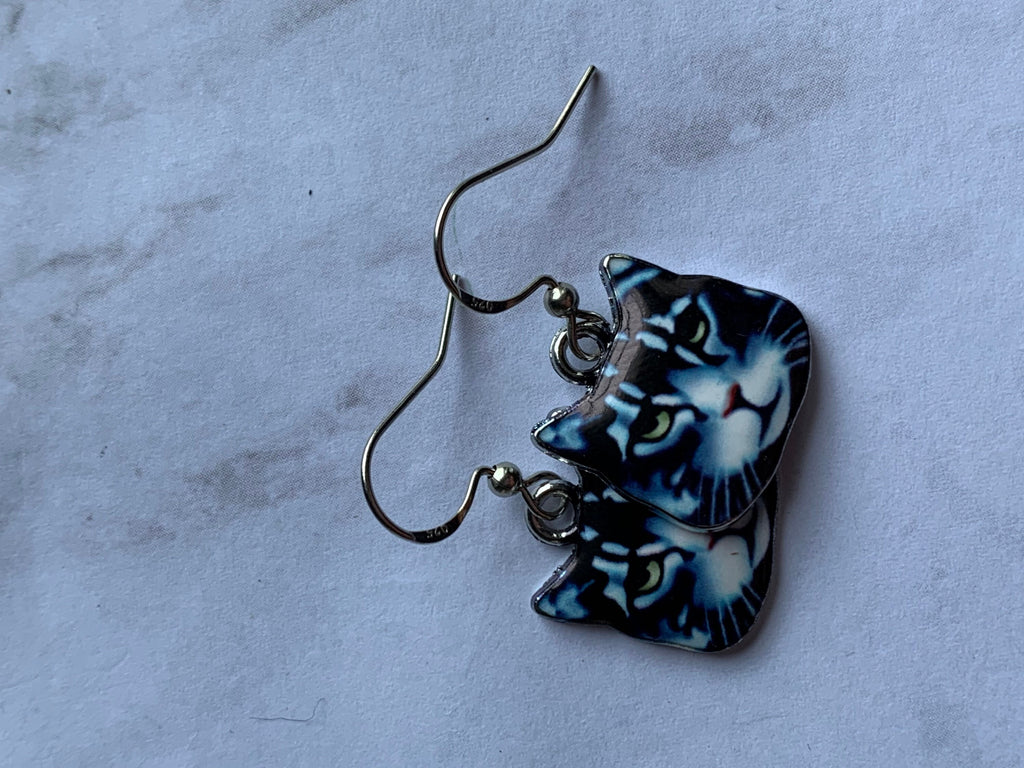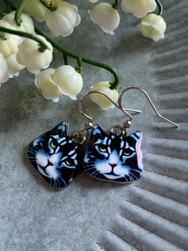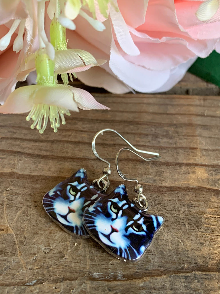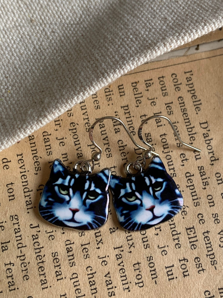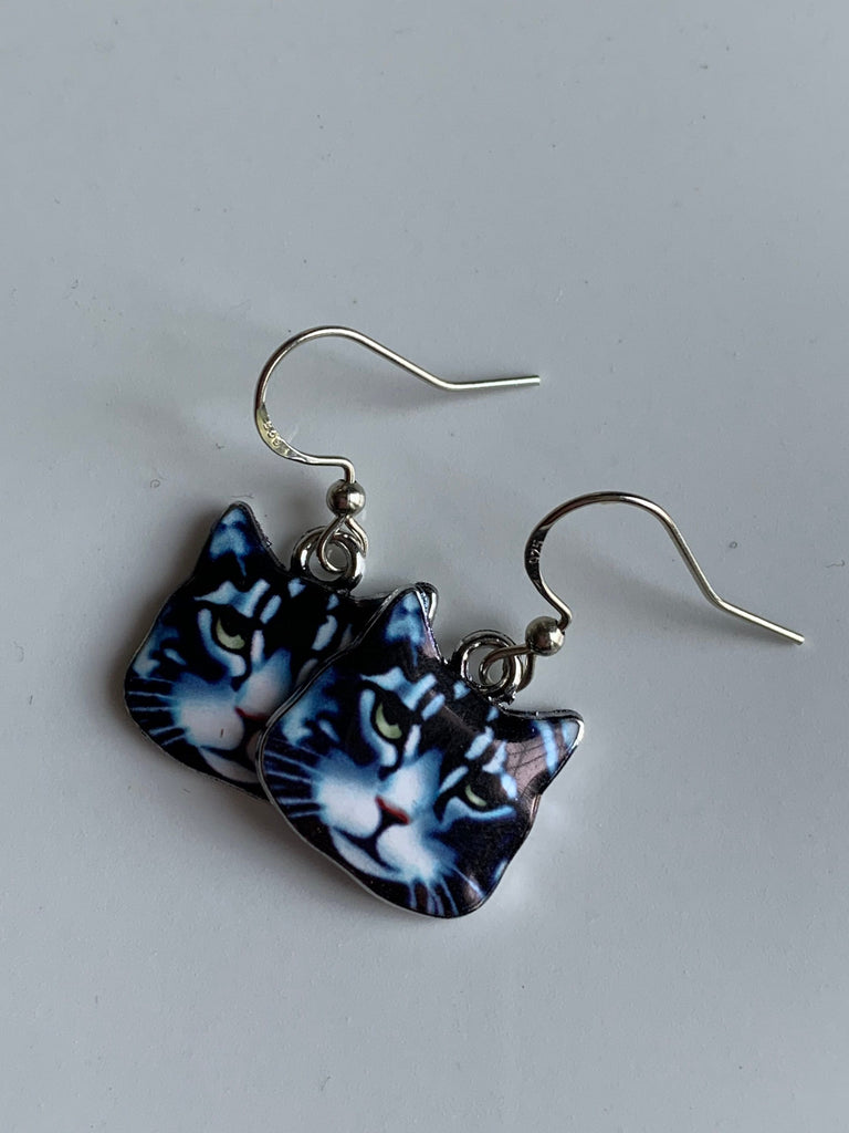 Boucles d’oreilles breloque tête de chat noir sur crochet alliage de métaux argent