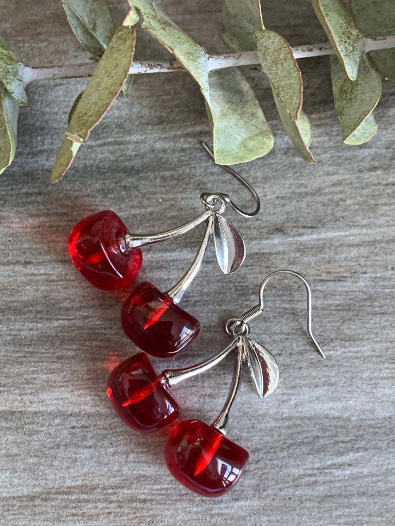 Boucles d’oreilles cerise rouge