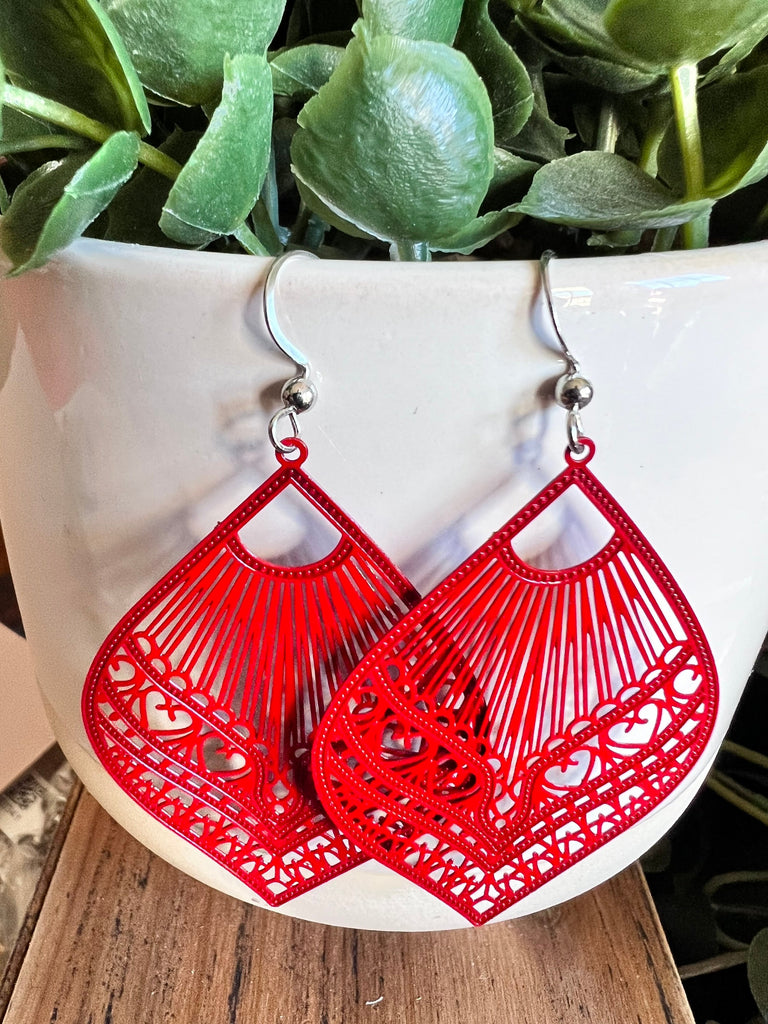 Boucles d’oreilles feuilles rouges petits cœurs dentelles