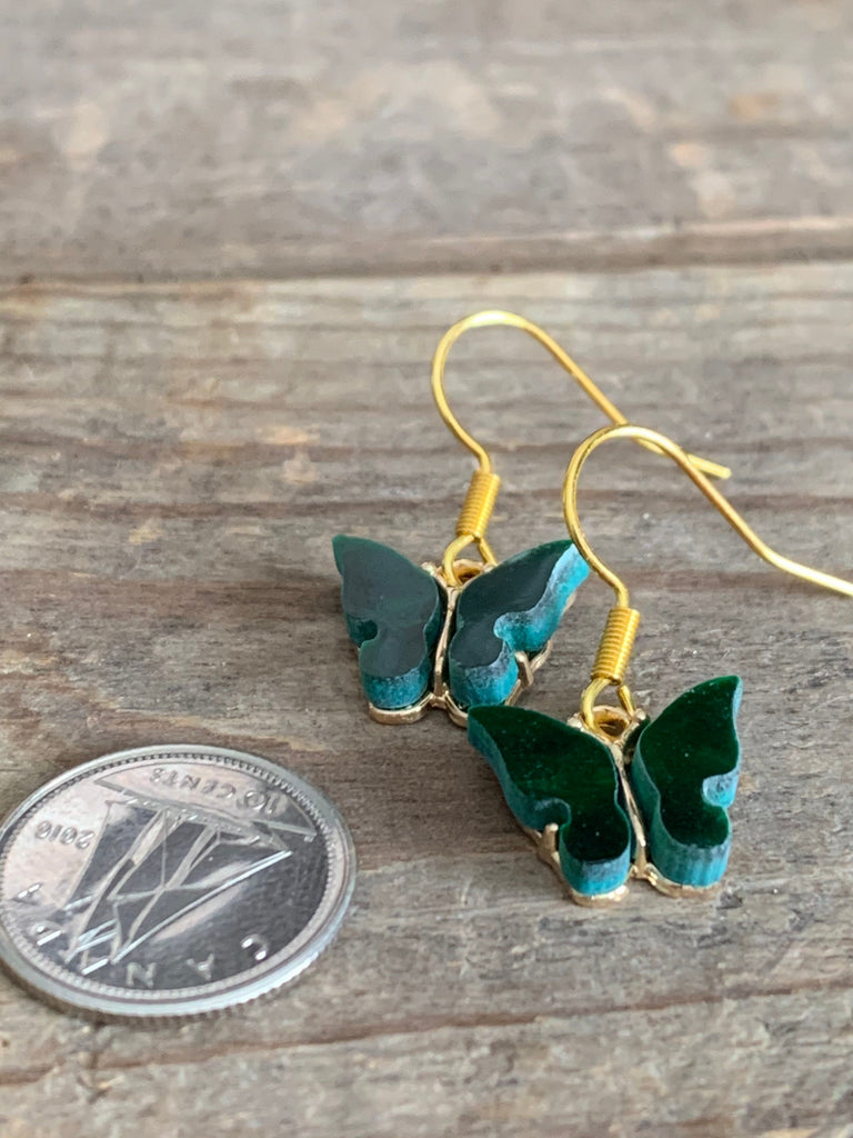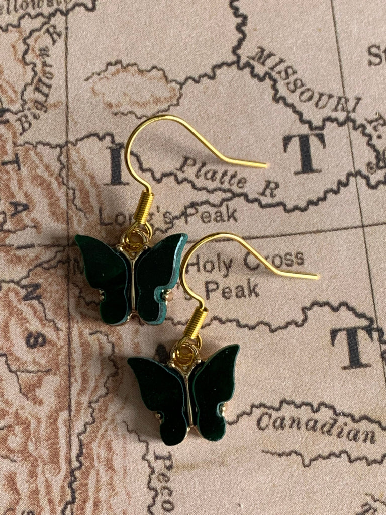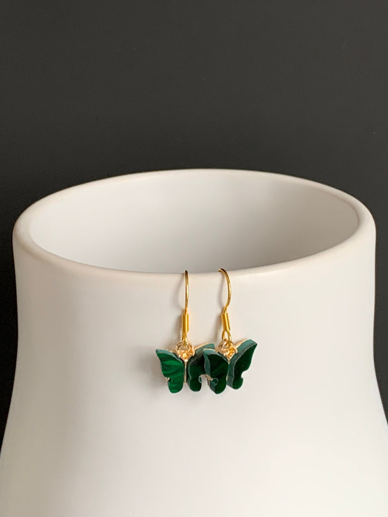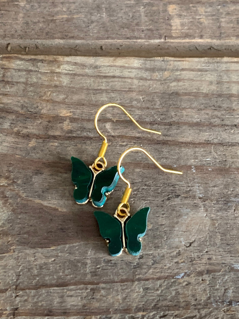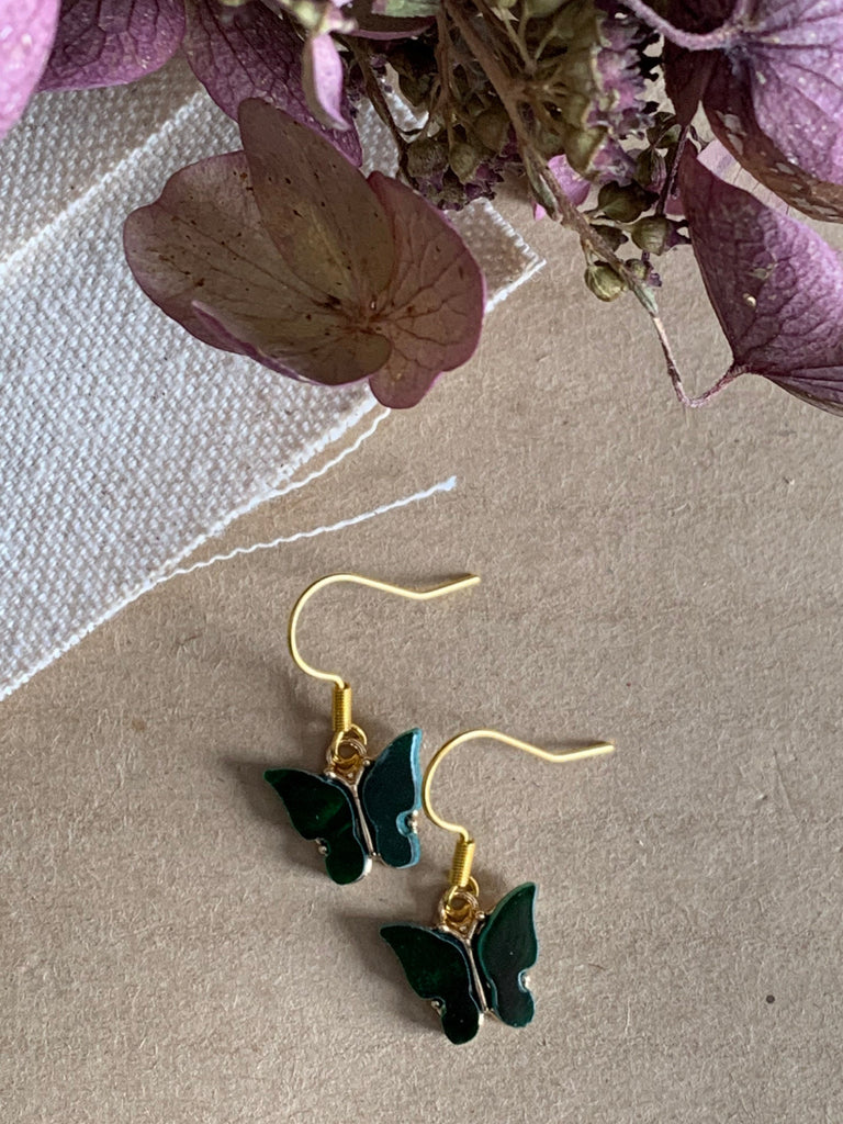 Boucles d’oreilles vertes papillon en liberté