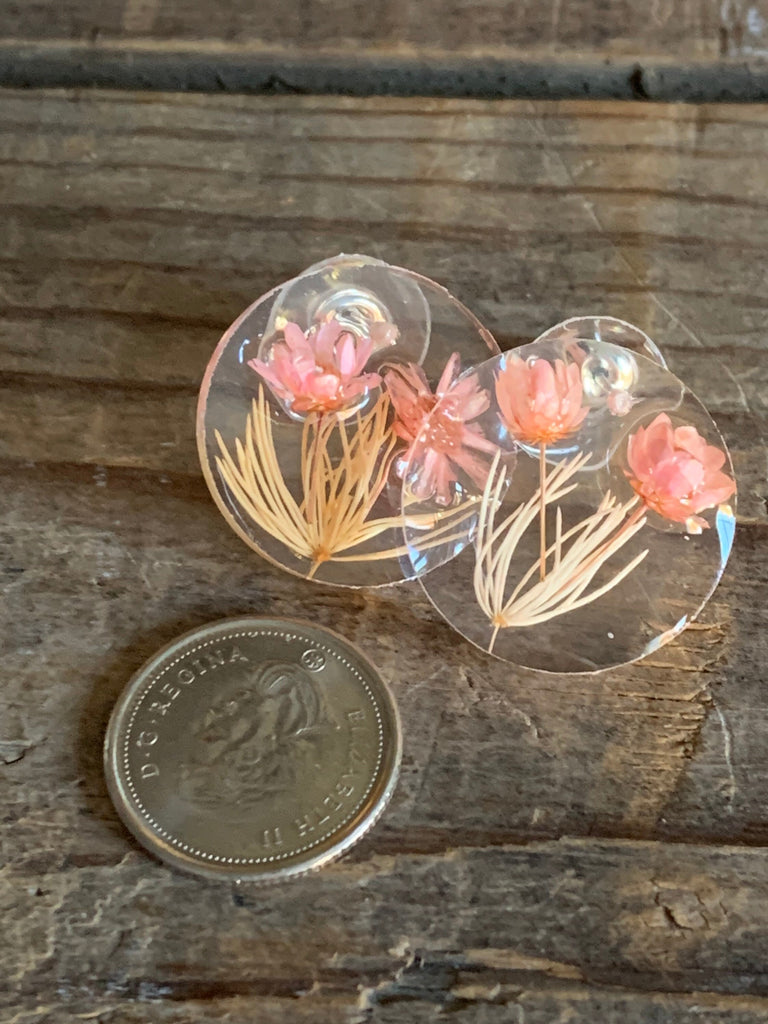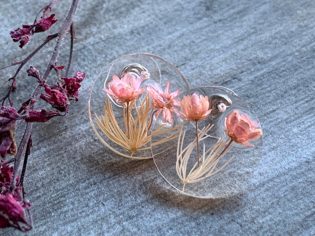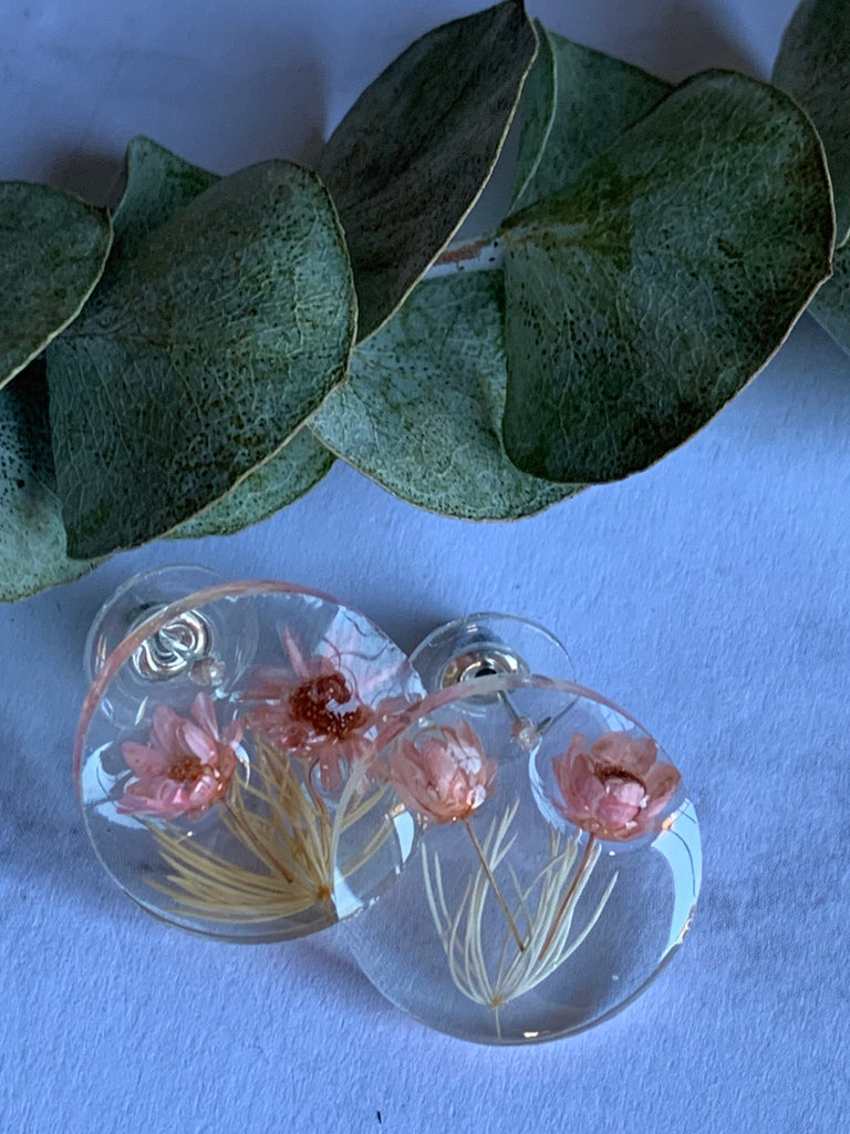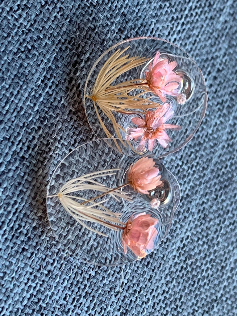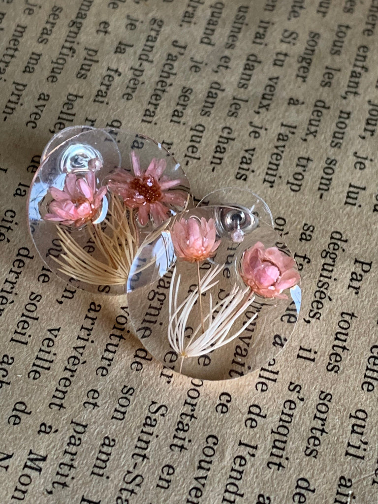 Boucles oreilles résines fleurs roses