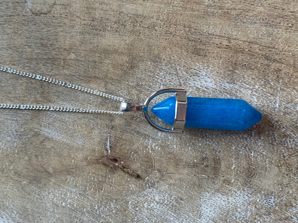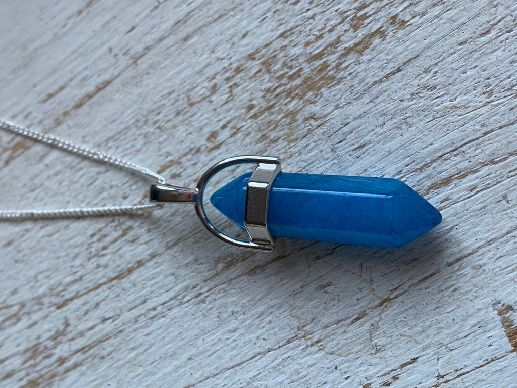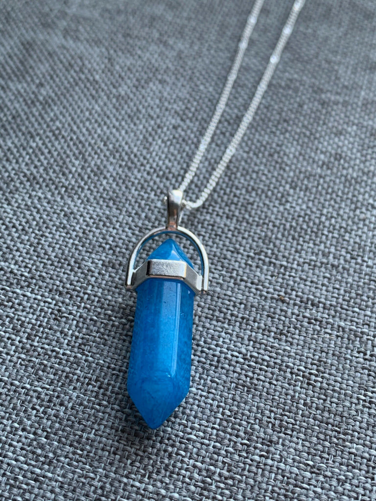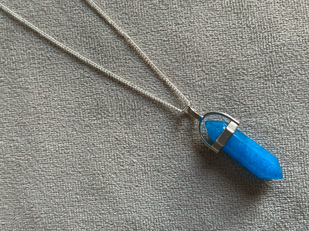 Collier alliage de métaux argent et pierre bleue pendule pendulum mystique