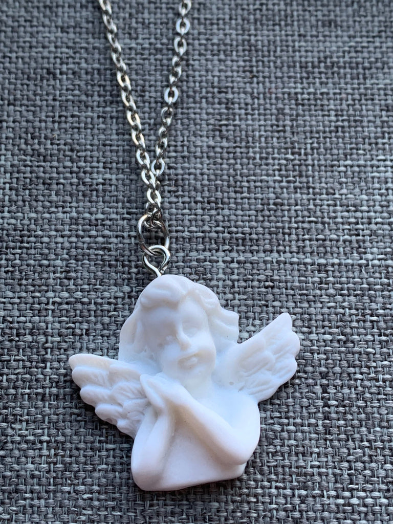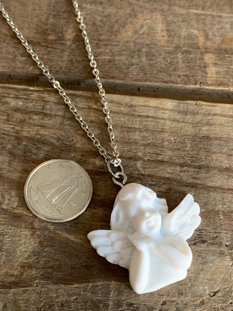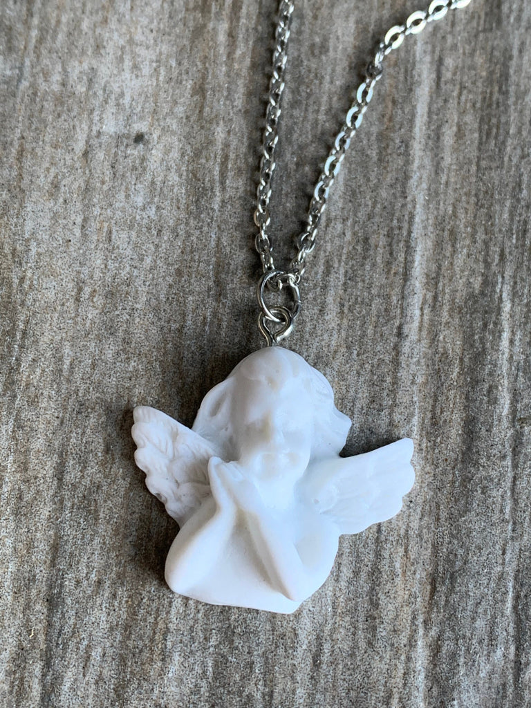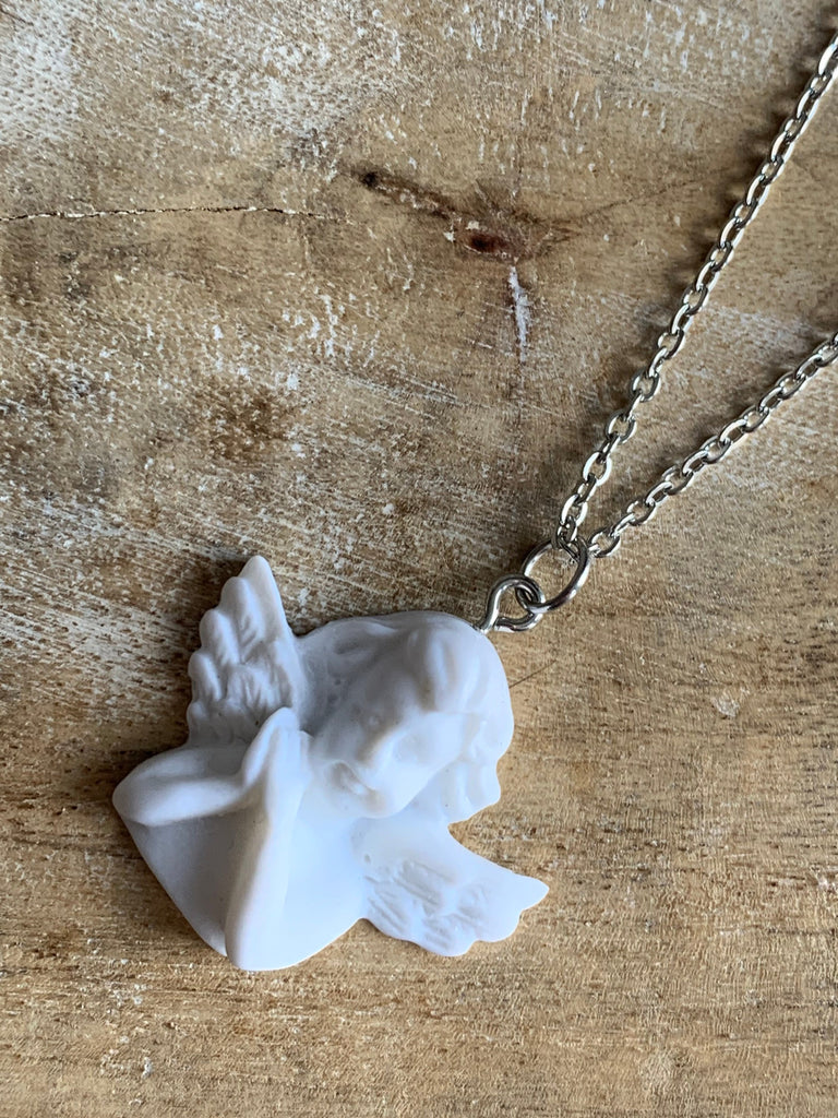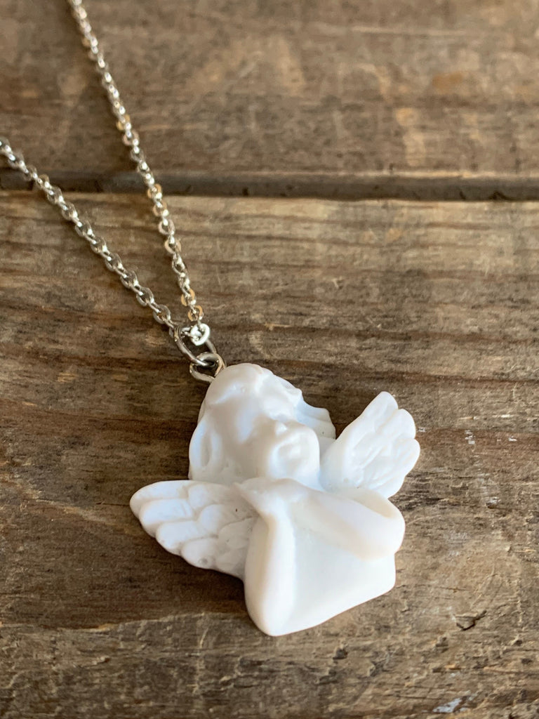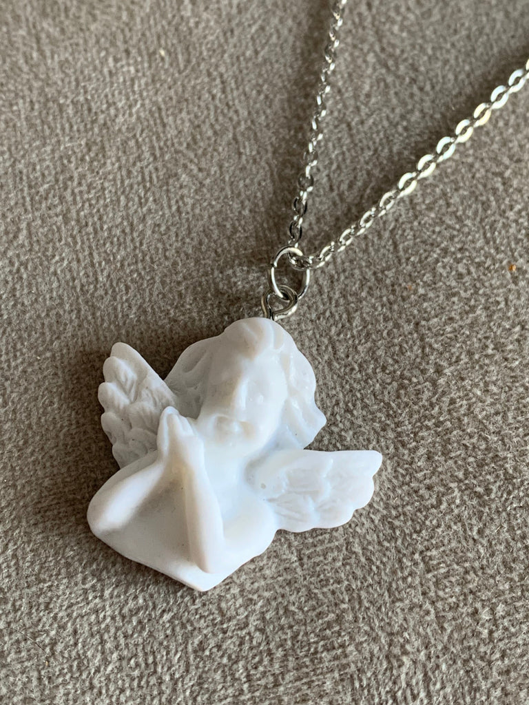 Collier breloque ange blanc sur chaîne alliage de métaux argent