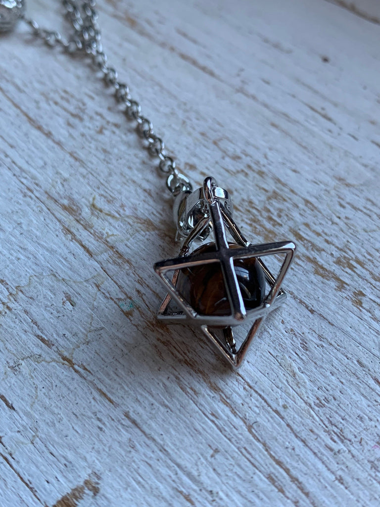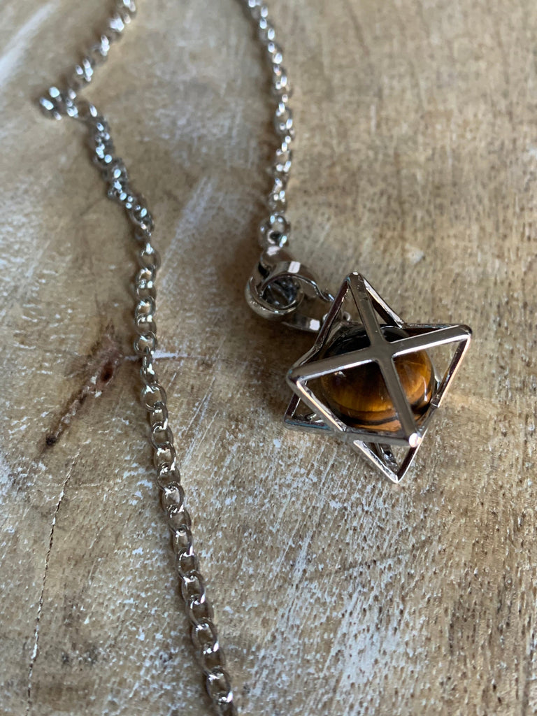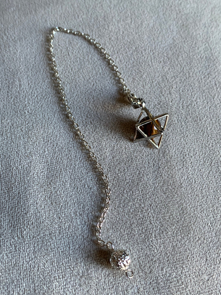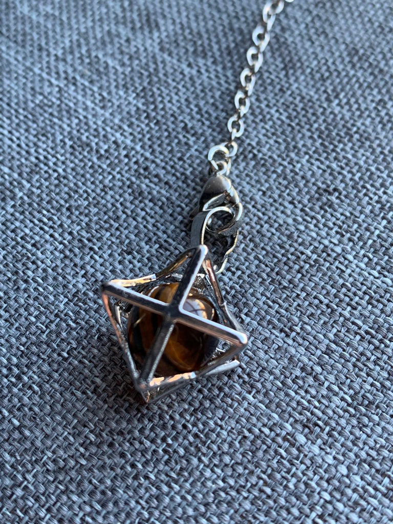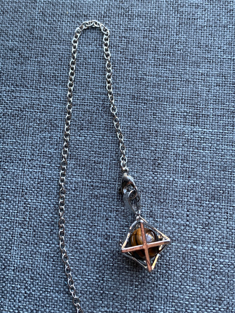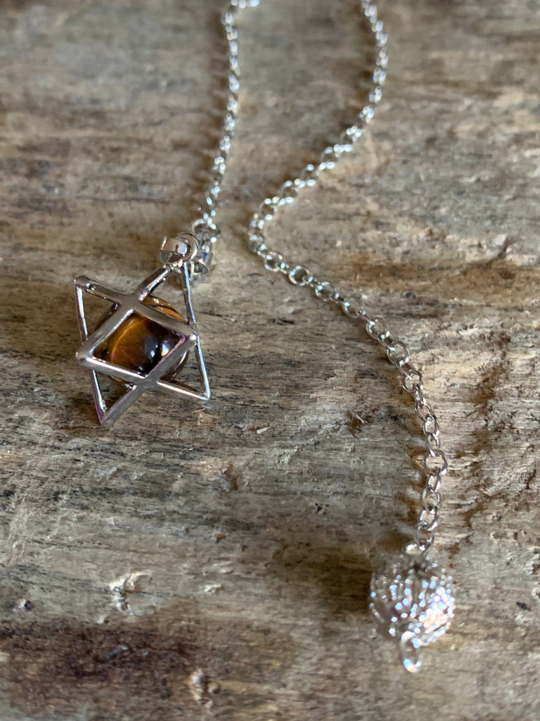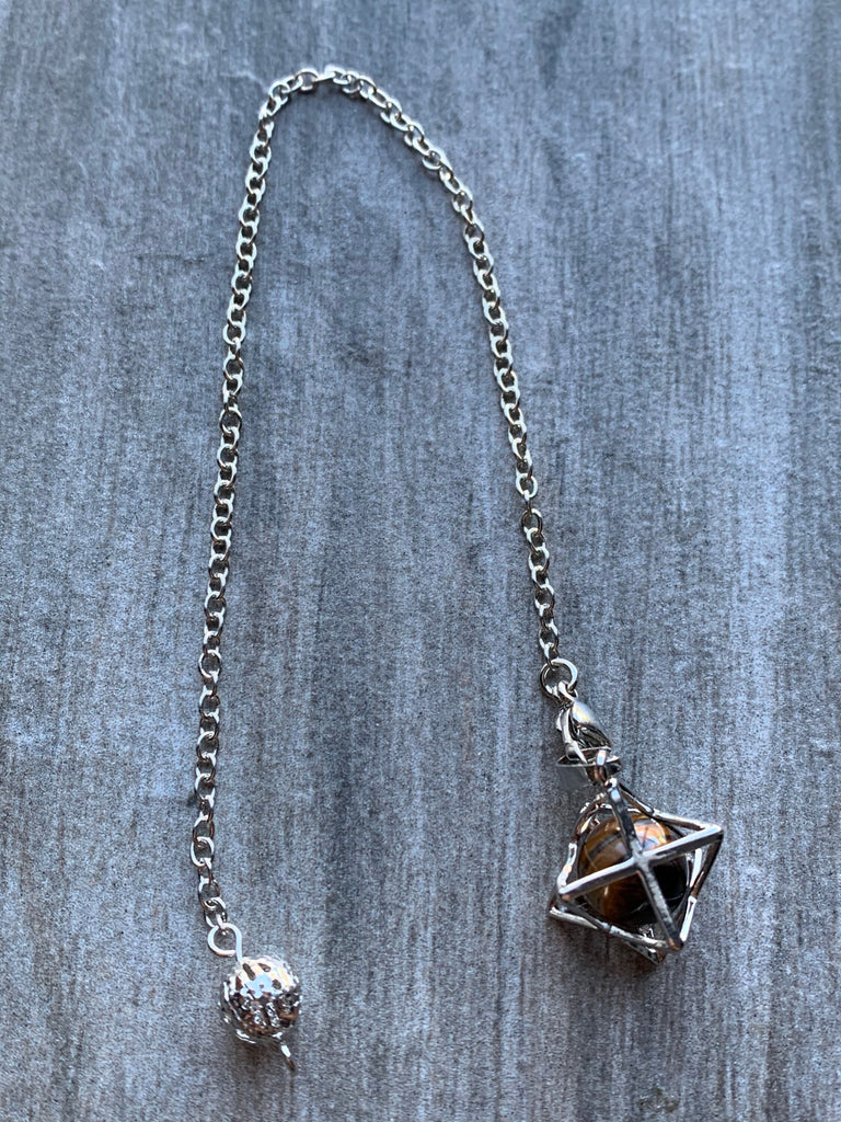 Pendule alliage de métaux argent et billes œil de tigre pendulum mystique